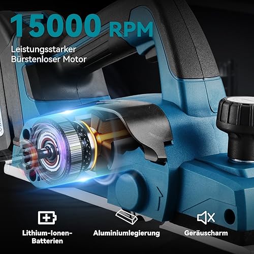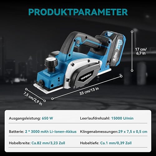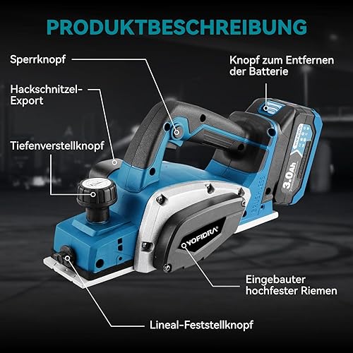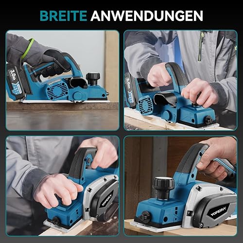 Yofidra Pialla Elettrica 650W, Pialletto Elettrico Professionale con 2 Batterie 3.0Ah, Larghezza Piallatura 82mm, Profondità 1mm, 15000 RPM, per Falegnameria, Lavorazione Legno, Fai da Te