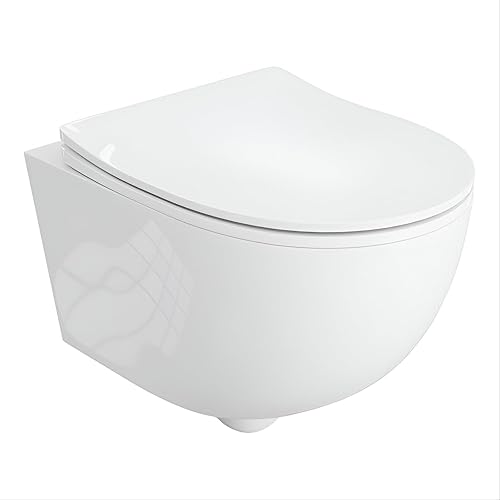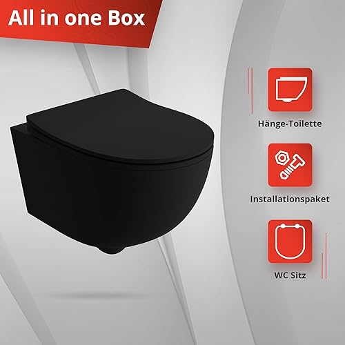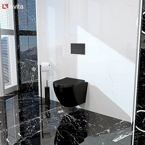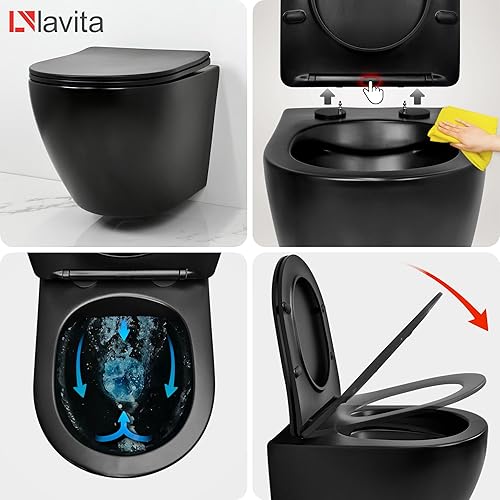 LAVITA Brava - WC da parete con chiusura automatica e cerniere in metallo, senza bordi, da appendere, 360 x 480 x 375 mm, colore: Nero