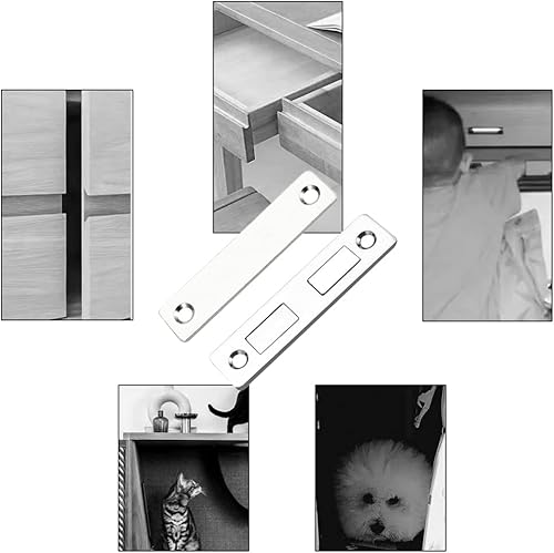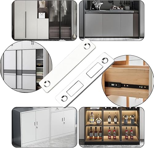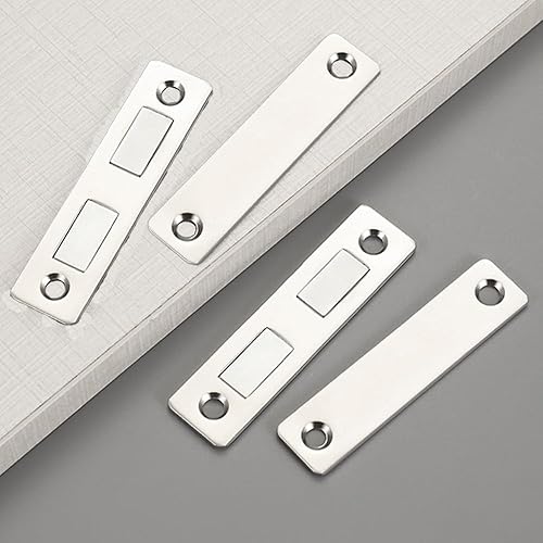 2 Pezzi Calamita per Mobili Chiusura Magnetica - Fermaporta Magnetico Senza Fori con Superficie Piana, Chiusura Invisibile per Ante Scorrevoli, Armadio, Cassetti (Argento, Include Viti)