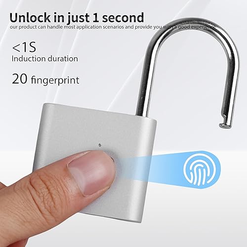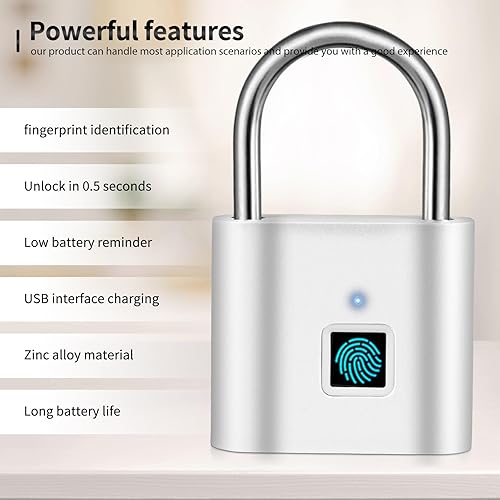 SPORWAY Serratura di impronte digitali: lucchetto di ricarica USB senza chiave IP55 impermeabile lucchetto, piccolo lucchetto con impronte digitali per Gym, ufficio, casa, giardino, armadio (argento)