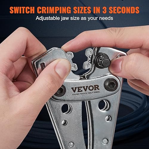 VEVOR Pinze Crimpatrice 6/10/16/25/35/50 mm² Pinza Capicorda per Terminali Batteria in Alluminio Rame AWG10-1/0, Pinza con Tagliacavo 6 Dimensioni Crimpatura 95 Connettori Anello Rame per Elettricista