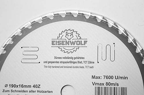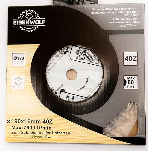 Lama per sega circolare, 190 x 16 mm, per legno con 40 denti TCT inclinati e tagli laser per ridurre il rumore