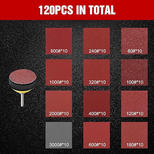 Dischi Abrasivi 75mm Grana 80/100/120/180/240/320/400/600/800/1000/2000/3000 Carta Vetro Abrasiva 120Pz per Smerigliatrice Pneumatica Elettrico
