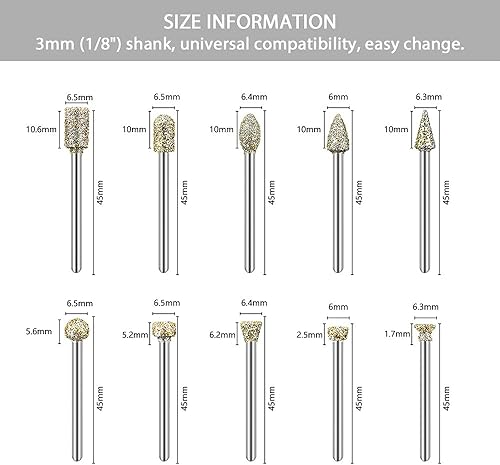 Set Punte Diamantata per Pietra, Frese Diamantate Punte Montate Abrasive con 1/8 pollici(3 mm) Gambo Utensili Rotanti per Intagliare Rettifica fai da te, Lucidatura, Incisione(20 pezzi)