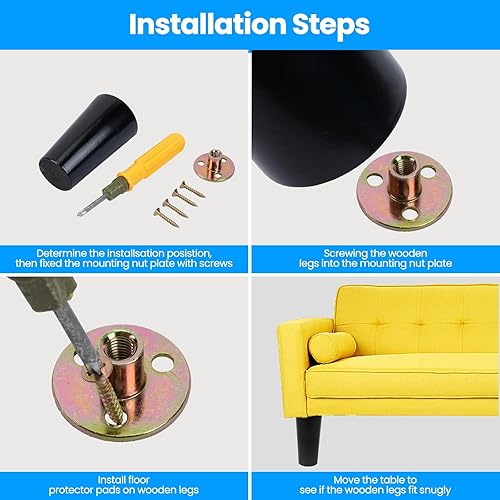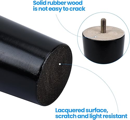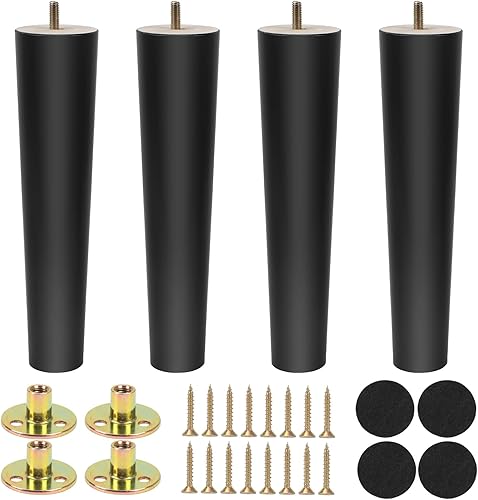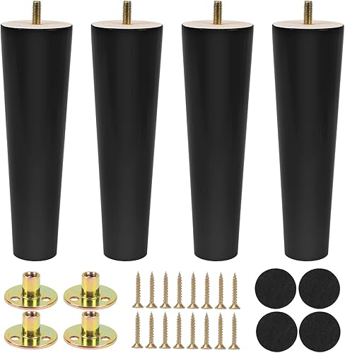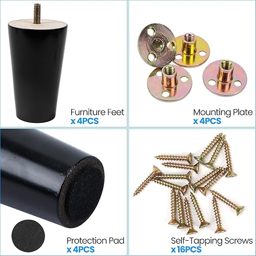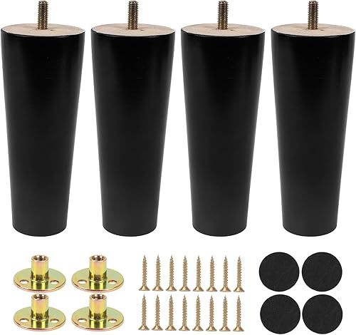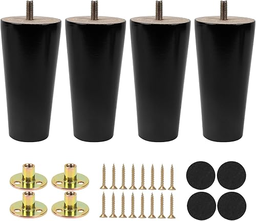 4 pezzi 15 cm Gambe per Mobili in Legno Conico Ferroso per Tavolo Divano Mobili di ricambio con Viti per Piastra di Montaggio e Protezione Antiscivolo, Nero