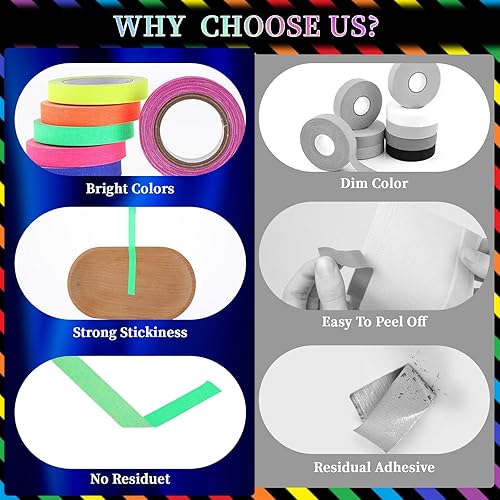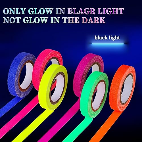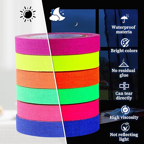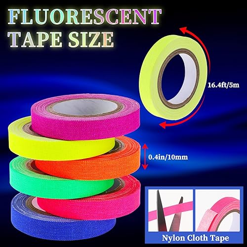 6 rotoli di nastro adesivo fluorescente, 5 m x 10 mm, autoadesivo, luce nera, per scale, pareti e palcoscenici (10 mm x 5 m)