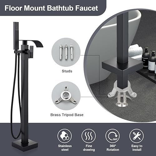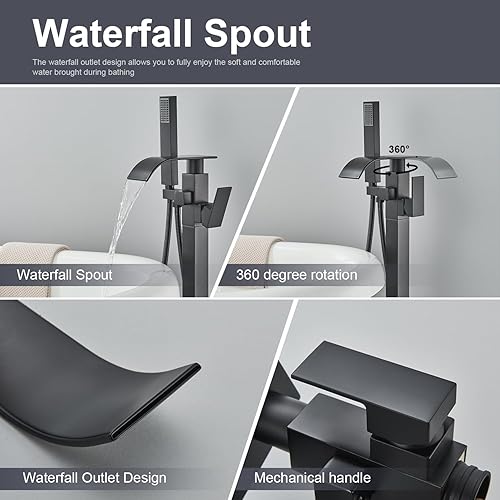 Senlesen - Rubinetto per vasca da bagno, in acciaio inox, con beccuccio a cascata e doccetta