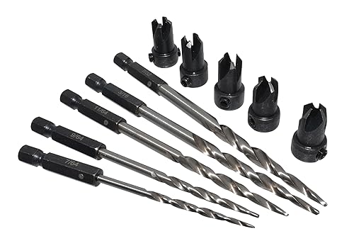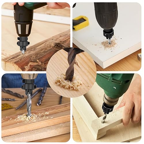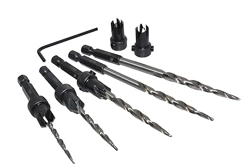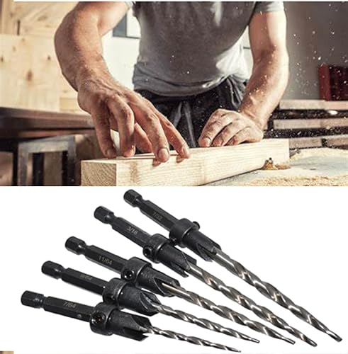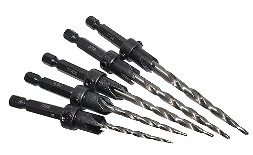 Meichoon Set di 5 punte per trapano a testa esagonale, 3 in 1, punte pilota per legno, 7/64 9/64 11/64 3/16 7/32 viti fori con arresto di profondità regolabile a sgancio rapido 1 chiave a brugola