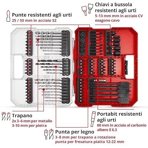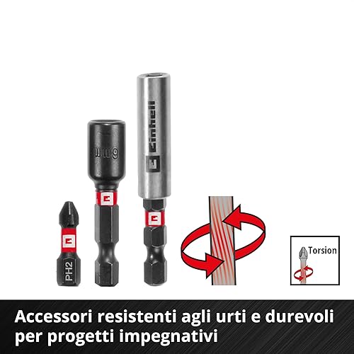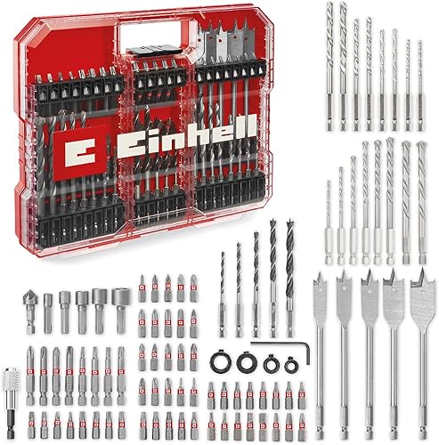 Set di punte e trapani originali Einhell XL-CASE da 95 pezzi resistenti agli urti (punte, punte da trapano, portapunte, chiave a bussola, svasatore, arresto del trapano, chiave a perno)