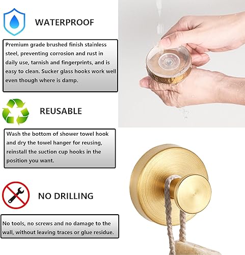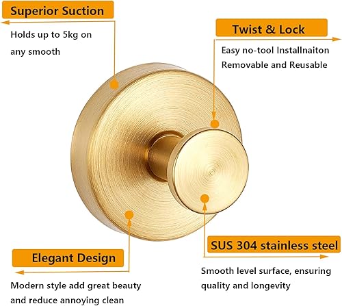 Ganci a ventosa, impermeabili, rimovibili e riutilizzabili, autoadesivi per bagno, cucina (oro 4)