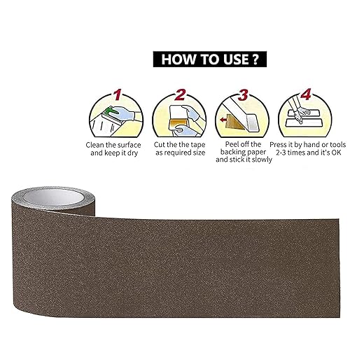 Strisce di Nastro Antiscivolo Autoadesive Marrone, Strisce Antiscivolo per Scale 10cm x 5m