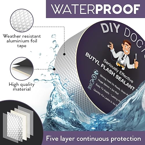 DIY Doctor Nastro in Butilene 100mm x 5m – Nastro Impermeabile in Alluminio per Perdite sul Tetto – Sigillante Resistente per Esterni
