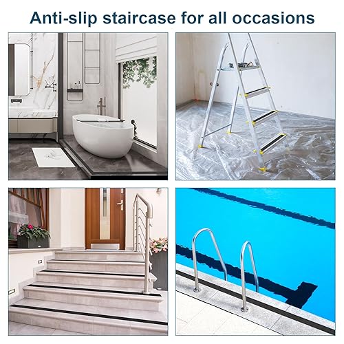 Nastro Adesivo Antiscivolo, Strisce Antiscivolo per Scale, 10cm × 10m, Nastro Antiscivolo per Scale, Esterne, Interne, Antiscivolo Scale...Nero