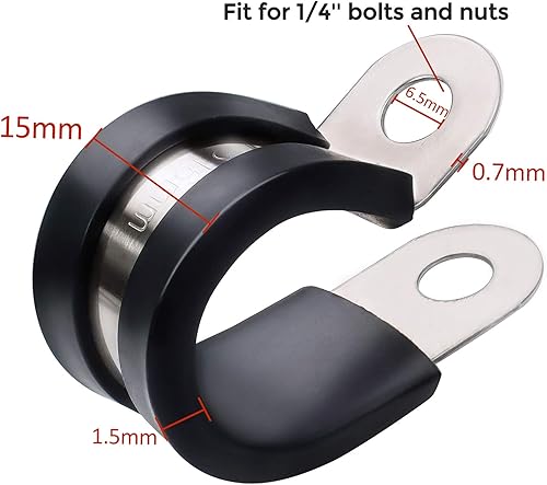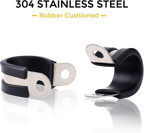 52Pcs Gomma Morsetto per Cavi in Acciaio Inossidabile P Clips Gomma Fascette Stringitubo 6 Dimensioni 1/4' 5/16' 3/8' 1/2' 5/8' 3/4' Morsetto per Cavi in Gomma