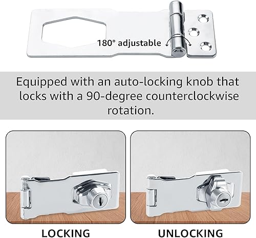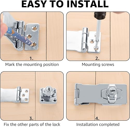 3 lucchetti da 4 pollici con chiave, 105 x 40 mm, in acciaio inox, con viti, richiudibili, per mobili, cantine, armadi, porte, camere