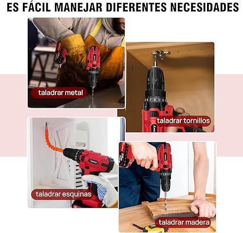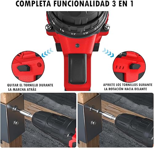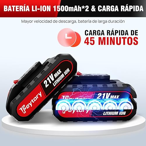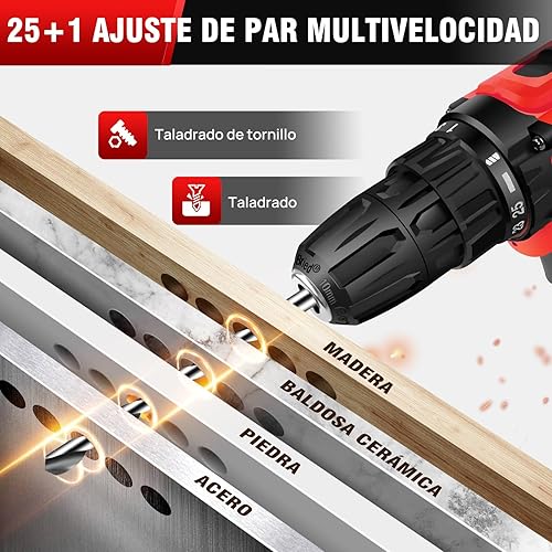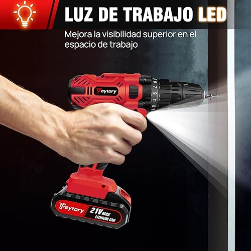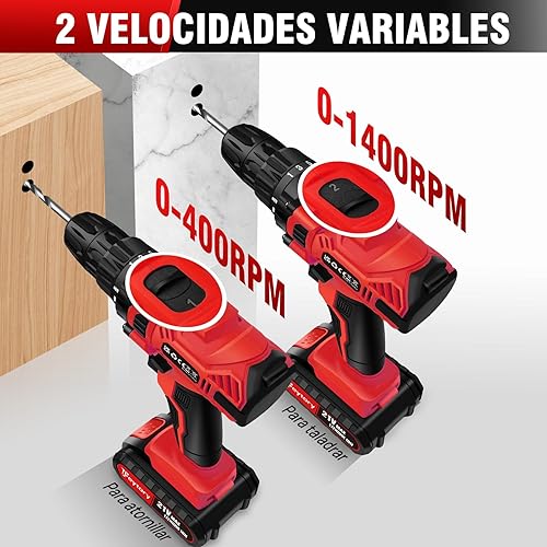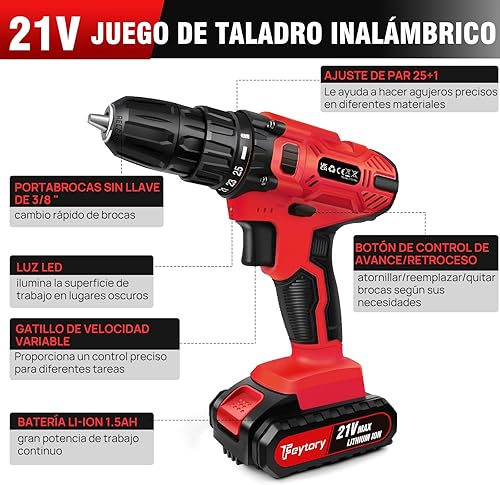 Trapano Avvitatore 21 V, 2 Batterie 1500 mAh, 25+1 Coppia, 45 N.m Max, 29 Punte, 2 Velocità, Luce LED per Casa e Giardino, Fai da Te Progetto