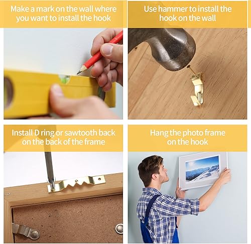 300 Pezzi Ganci per Appendere Quadri, Ganci in Metallo per Appendere Cornice per Foto Muro, con Chiodi, Occhi a Vite, Anelli a D, Supporti Appendiabiti Pesanti Kit