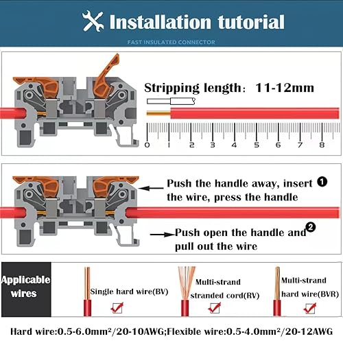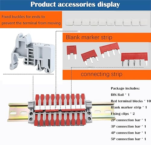 Kit di Morsettiere Su Guida DIN, con connettori compatti universali da 10 pezzi (rosso), Striscia di Marcatura, Striscia di Collegamento (2/3/4/5P) e moduli fissi