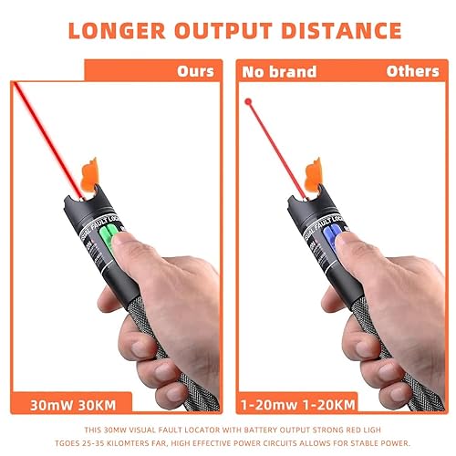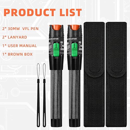 Kit di localizzazione guasti visivi da 2 pezzi 30 MW, tester per cavi in fibra ottica da 30 km per ingegneria delle telecomunicazioni CATV, tester per fibre VFL adatta interfaccia FC/SC/ST da 2,5 mm