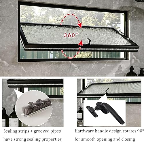Finestra di Casa Bianca, Finestra A Battente Aperta Seminterrato Lega Alluminio, Finestra Tramoggia Rotante Isolata con Ventilazione A Incasso Bagno(65x35cm)
