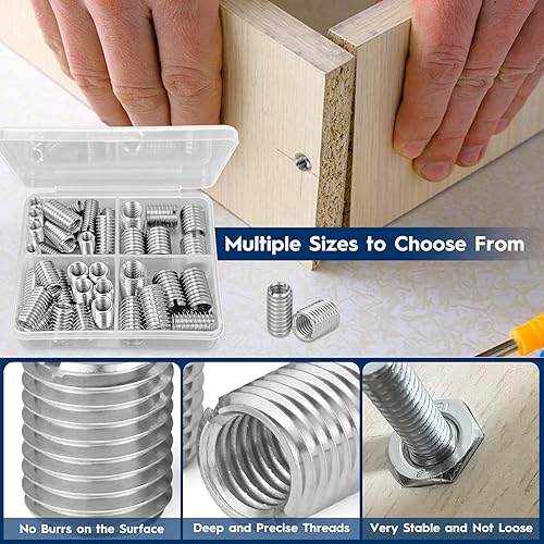 Set di 40 inserti filettati, M4-M6/M6-M8/M8-M10, inserti per dadi esagonali, manicotti a vite, inserti per dadi esagonali in acciaio al carbonio zincato, per mobili in legno