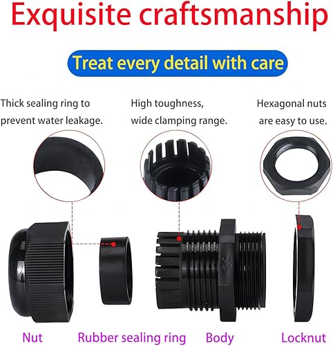 5 Pezzi PG16 Pressacavi, Pressacavi Connettori Impermeabile, Pressacavi Impermeabili, Nylon Connettori Pressacavi Elettrici, Protezione per Fili