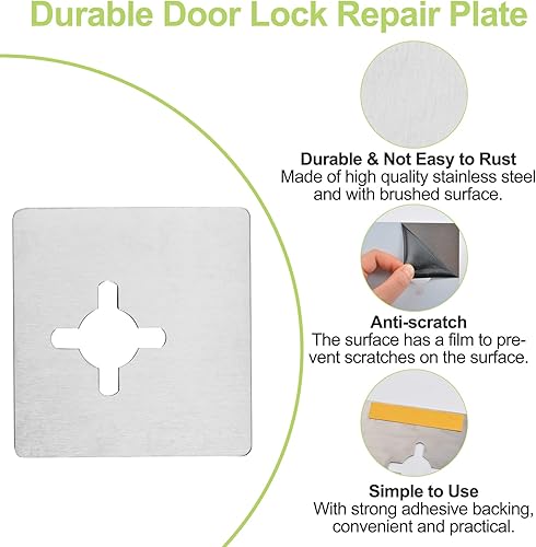 UFURMATE Piastra di riparazione della serratura della porta, 4 pomelli per porte in acciaio inox, piastre di fissaggio autoadesive, maniglie di riparazione (superficie spazzolata)