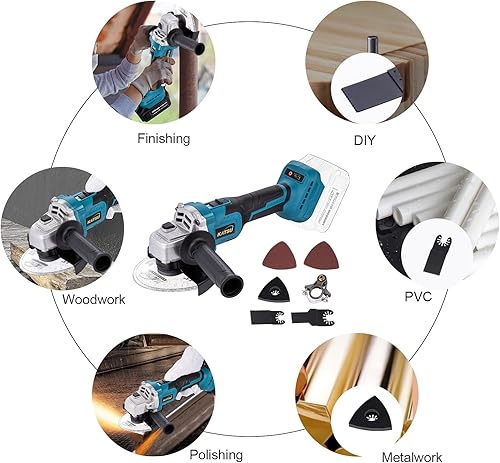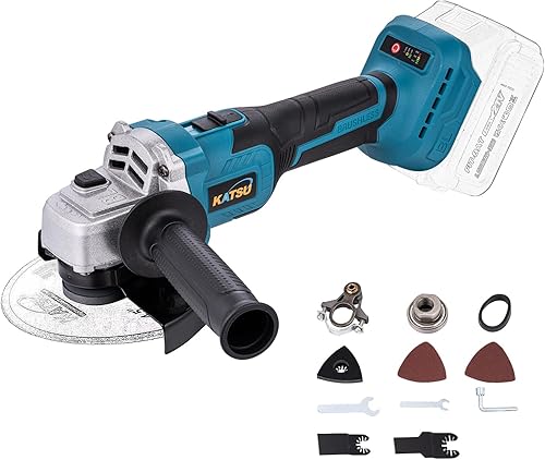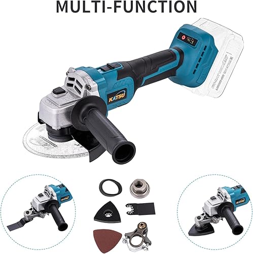 KATSU FIT-BAT 21V Smerigliatrice Angolare a Batteria senza spazzole 115mm 125mm con Kit di Adattatore Multiutensile Oscillante per Smerigliatura Lucidatura, senza Batteria