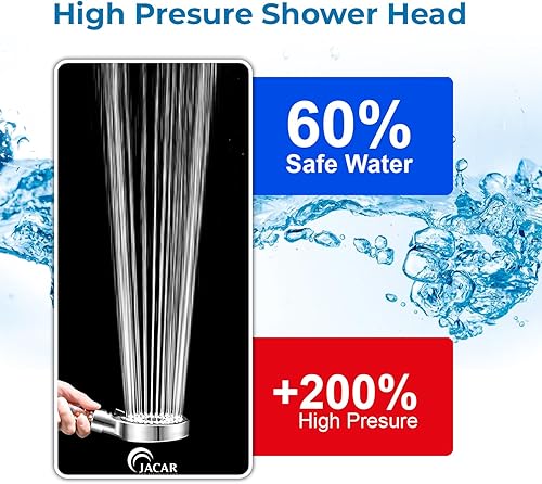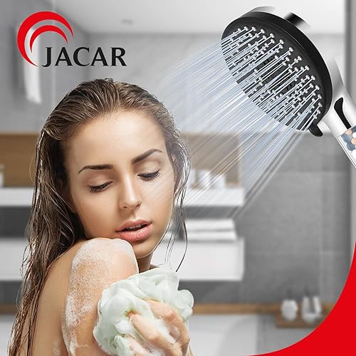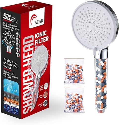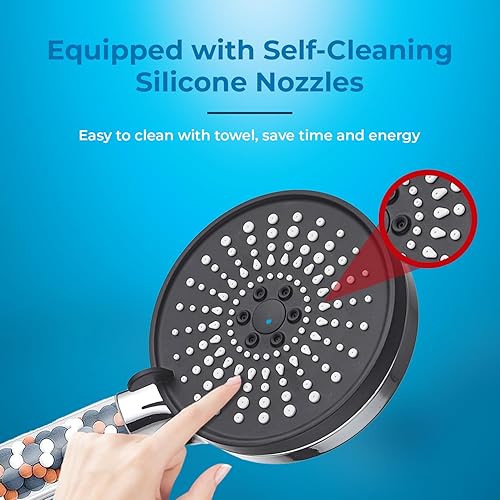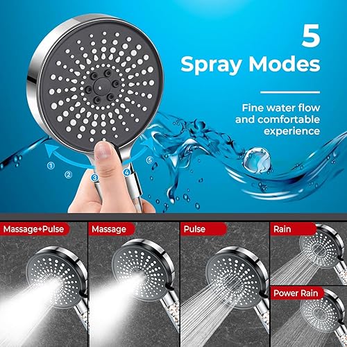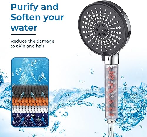 Soffione Doccia Anticalcare Risparmio Idrico 7,5 L/min - 5 Tipi di Getto Spray - Filtro Doccino con Pietre Minerali - Alta Pressione (NERO)
