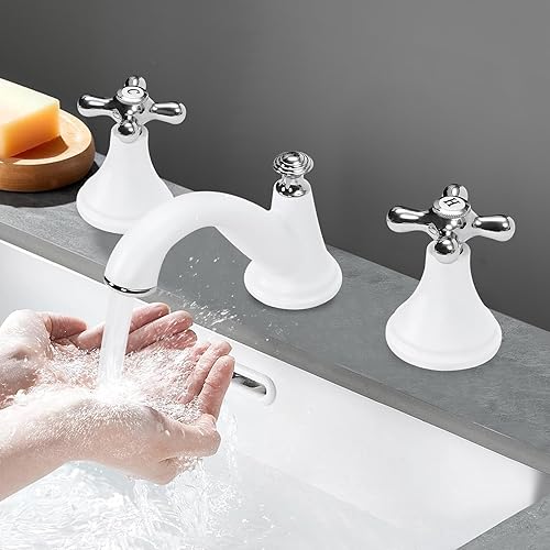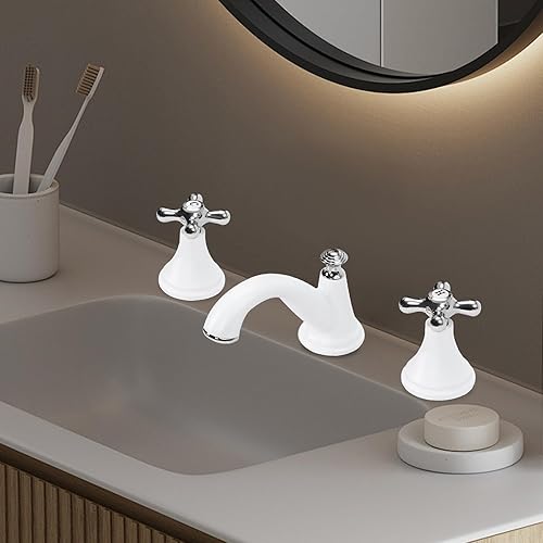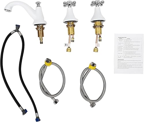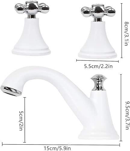 Rubinetto da bagno a 3 fori, resistente alla corrosione, per lavabo, per bagno, cucina, docce, bianco