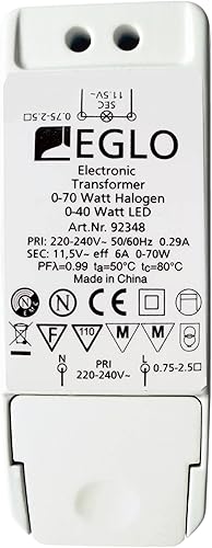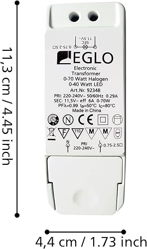 Trasformatore EGLO, trasformatore LED alogeno, trasformatore per LED: 0-40 Watt, alogeno: 0-70 Watt, regolabile con interruttore dimmer