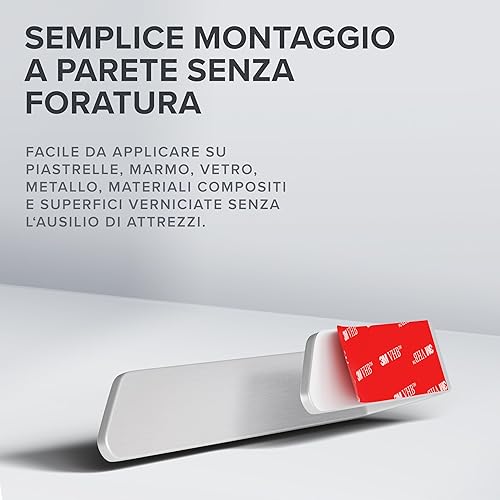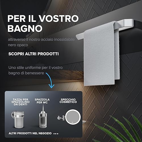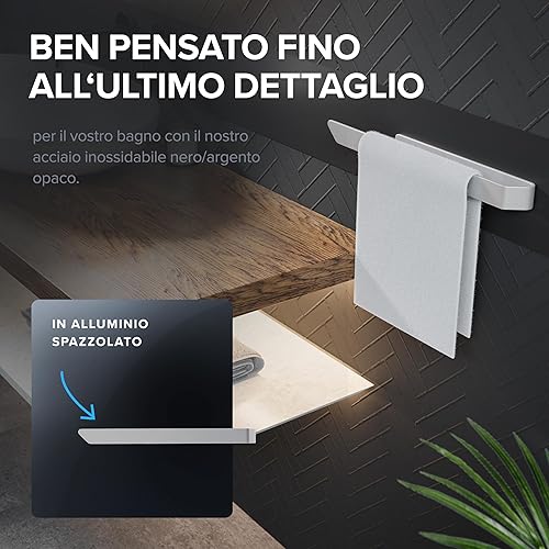portasalviette Kongsoya nero in alluminio spazzolato | da incollare | 20 cm | design moderno e semplice | portasalviette senza foratura | per strofinacci o asciugamani in bagno o in cucina