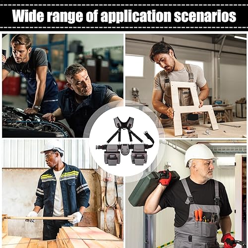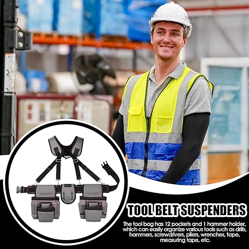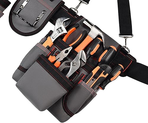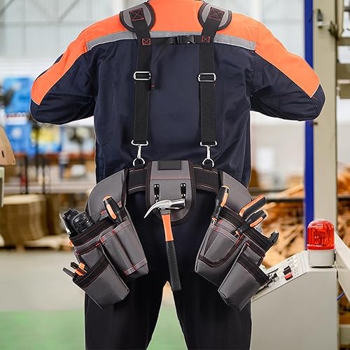 Cintura porta attrezzi professionale | Borsa portautensili regolabile | Cintura porta attrezzi | Cintura porta attrezzi con bretelle e porta martello, ideale per elettricisti, falegnami, meccanici e