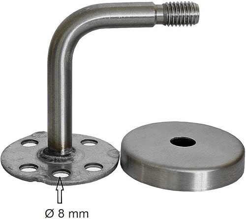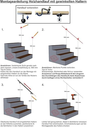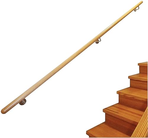 Corrimano in acero per scale, manico in legno ad angolo, supporto in acciaio inox, lunghezza 30-500 cm da un unico pezzo/variante: 200 cm con 3 supporti, tappo in acciaio inox leggermente bombato