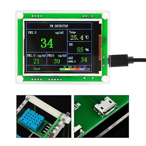 Rilevatore PM 2.5, Monitor Digitale della qualità Dell'aria DC 5V Rilevatore PM2.5 per Auto All'aperto Dell'ospedale della Scuola Dell'ufficio Domestico 8,5 X 6,5 Cm