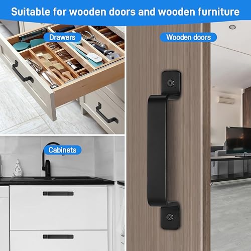 Maniglie Armadio, 2 Pezzi Maniglia Porta Esterna 190 X 25 mm, Maniglione Porta Esterna Stile Retrò, Maniglie Per Cassetti Con Viti, Per Porte, Finestre, Armadi, Mobili, Esterni(Nero)