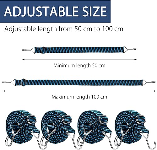Elastico con gancio, 4 espansori regolabili con gancio, 1 m, tenditore per bagagli, cinghia di tensione per bicicletta, in gomma con gancio, cinghie di tensione per bicicletta, gancio in