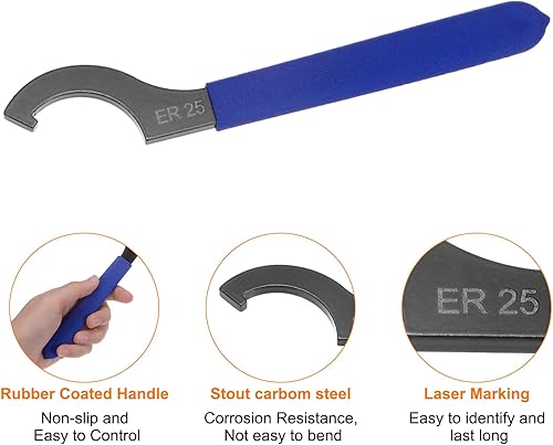 QUARKZMAN Chiave a Gancio C Er25 Dado Chiave Antiurto Mandrino in Acciaio Dado con Impugnatura Antiscivolo Blu per Serraggio Tornio