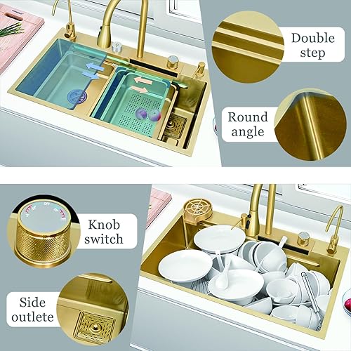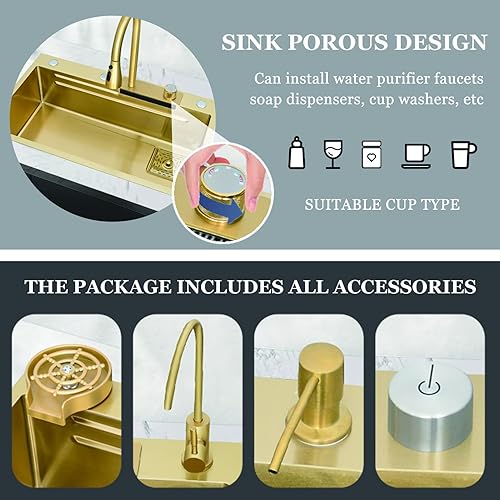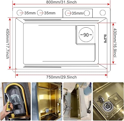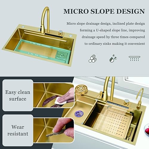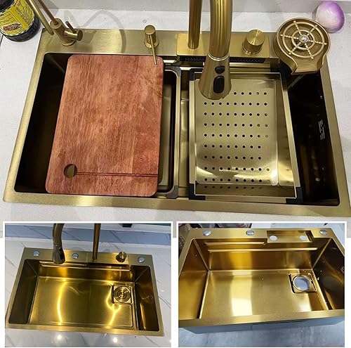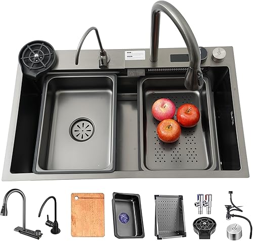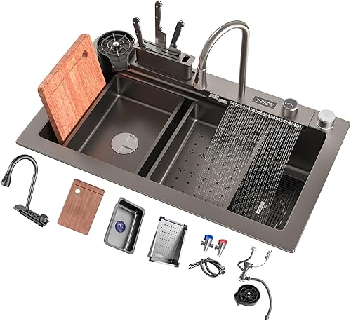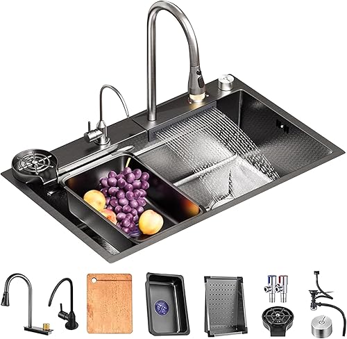 80x50cm Lavandino Cucina, Cascata Lavello Cucina, 1 Vasche In Acciaio Inox Nero Rettangolare, Lavello Cucina Multifunzione Per Workstation, Accessori Completi