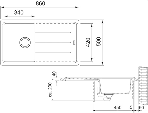 Lavello composito cucina Plados a una vasca più scolapiatti PL0861 (Avena)