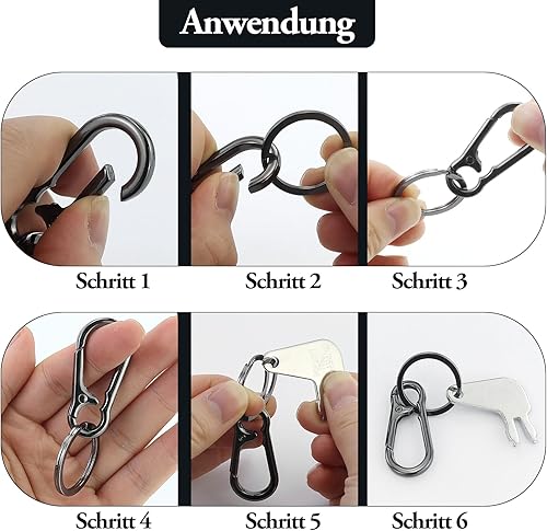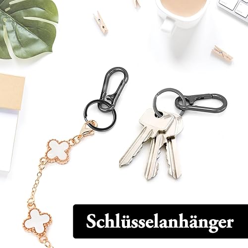 Set di 4 Portachiavi con Moschettone – Piccolo Moschettone in Metallo, Rimovibile – Moschettone Portachiavi per Chiavi Auto, Zaino, Campeggio e Viaggi, Ganci Portachiavi