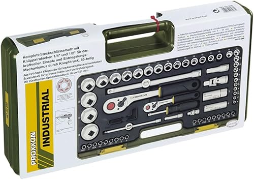 PROXXON 23286 Serie Completa con Leva a cricco da 1/4'' e da 1/2'', 65 Pezzi, 0 V, Nero, Set di 65