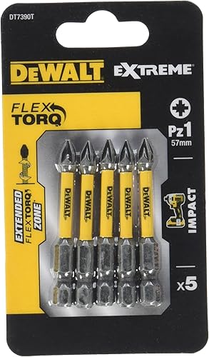 DEWALT DT7390T-QZ Inserti per Avvitatore a Impulsi Impact Torsion Extreme, Attacco 1/4', 50 mm PZ1, Confezione da 5 Pezzi