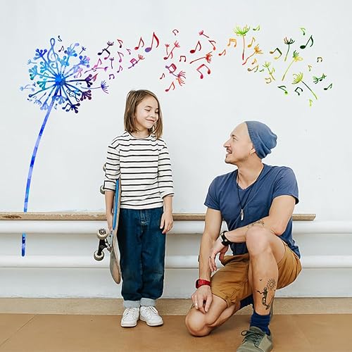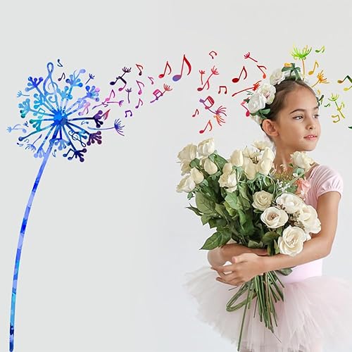 Note Musicali Colorate Dente di Leone Adesivo Murale Fiore Adesivo Acquerello Fiori Musica Note Musicali Natura Piante Home Interior Design Arte Murale Adesivo In Vinile