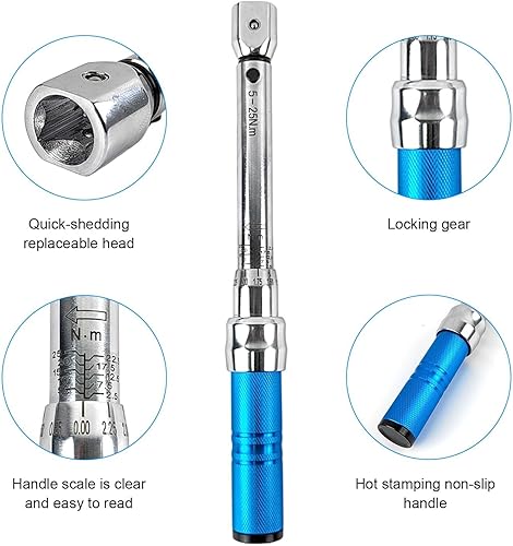 Chiave Dinamometrica 5-25 Nm, 235×9×12 mm Chiave a Cricchetto Regolabile, Precisione Errore ±3%, Chiave di Precisione con Cricchetto Bidirezionale, per Auto, Camion, Moto (1)