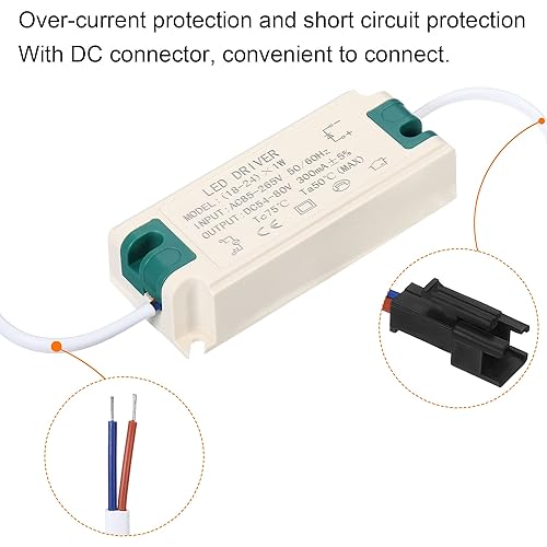 PATIKIL 18-24W 300mA Driver LED Alimentatore, AC 85-265V Uscita 54-80V DC Maschio Connettore Costante Corrente Raddrizzatore Trasformatore Esterno Alimentazione per Lampade LED