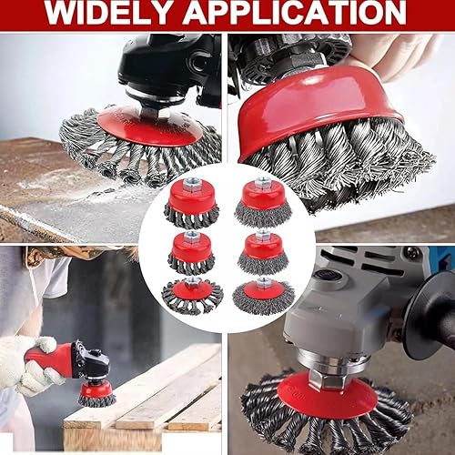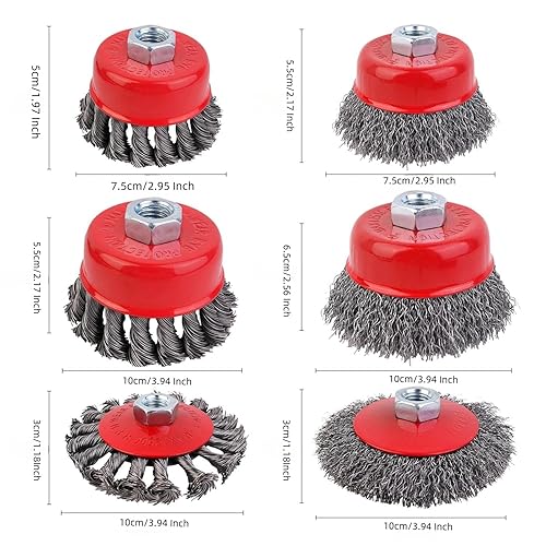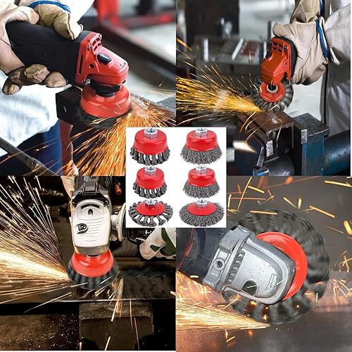 12 Pezzi Spazzola Metallica Smerigliatrice Angolare, Set Di Spazzole a Tazza,bM14 Spazzola Acciaio per Smerigliatura Metalli per Rimozione Ruggine e Vernice, Diametro 75 mm e 100 mm