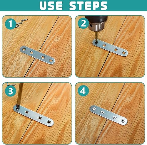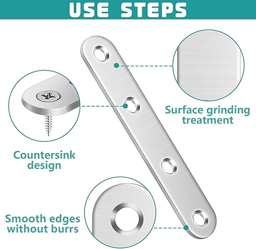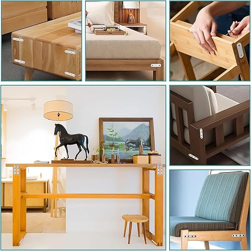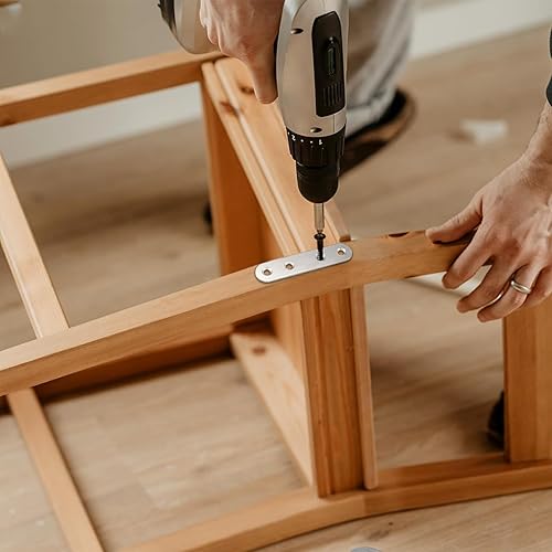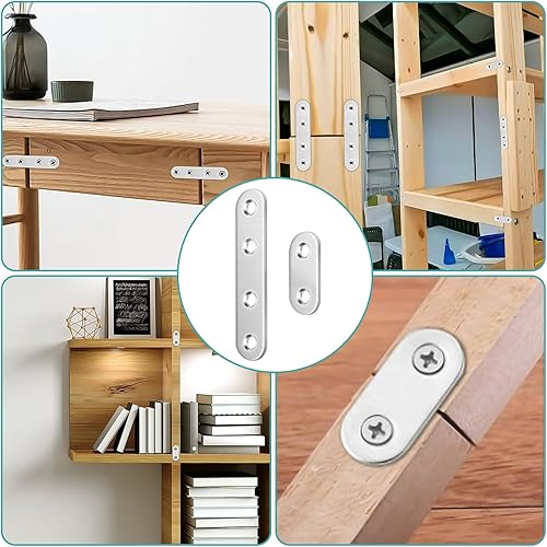 XSHAO® 32 pezzi connettori piatti in acciaio inox, piastra di collegamento forata con 96 viti per armadio, tavolo, sedia, legno e mobili (2 dimensioni)