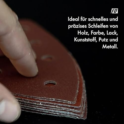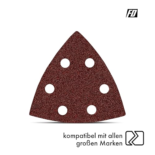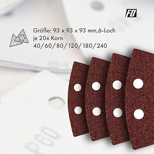 Triangoli Abrasivi Delta │ 120 pezzi │ 6 fori │ 93 x 93 x 93 mm │ Mixpack (20 x grana 40/60/80/120/180/240 ciascuno) │ per levigatrici delta │ Fogli Abrasivi │ Abrasivi Triangolari │ Carta Abrasiva