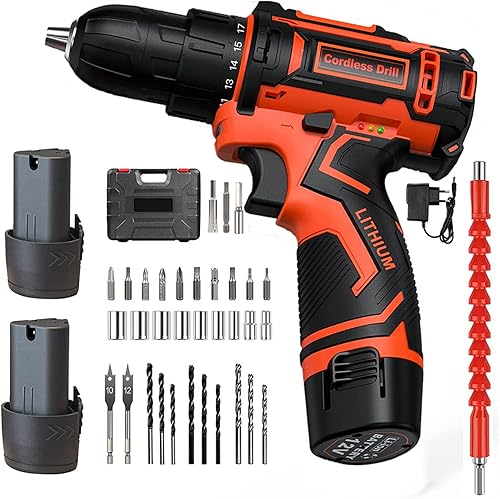 Avvitatore Elettrico,Trapano Avvitatore Batteria 12V,Avvitatore a Batteria con 2 Batteries 2.0Ah,35Nm Avvitatore Elettrico,25+1Coppie2 Velocità,34CS Accessori,elettrico a batteria Strumento